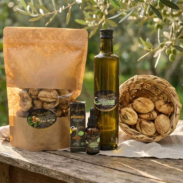 Ata Yaylası’nın imzası hâline gelen taş baskı zeytinyağı (500 ml), bu paketteki ürünlerin tamamlayıcısı niteliğindedir. Aydın’ın yerel zeytinlerinden, taş değirmenlerde soğuk sıkım yöntemiyle elde edilen bu yağ, düşük ısıda işlendiği için zeytinin doğal antioksidan bileşenlerini, E vitaminini ve oleik asidi maksimum düzeyde korur. Bu da onu yalnızca yemeklerde değil, doğrudan tüketim için de değerli kılar.