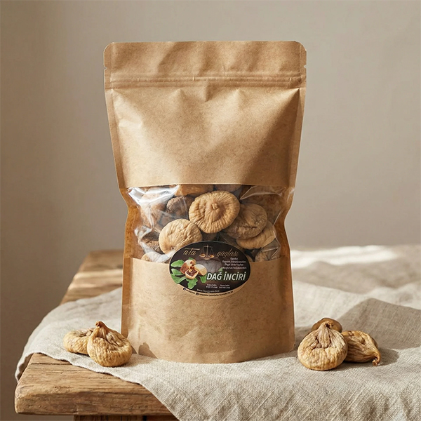 Orta boy dağ inciri, Ata Yaylası’nın 25659 Sayılı Organik Tarım Yönetmeliği’ne uygun olarak sertifikalandırılmış üretim sürecinden geçer. El değmeden hazırlanır, hiçbir endüstriyel müdahale içermez. Ürünler, gıda güvenliği ve hijyen esaslarına sadık kalınarak, kilitli doypack ambalaj sistemi ile paketlenir. Bu ambalaj, hem ürünü taze tutar hem de kolay saklama ve yeniden kullanma olanağı sağlar.